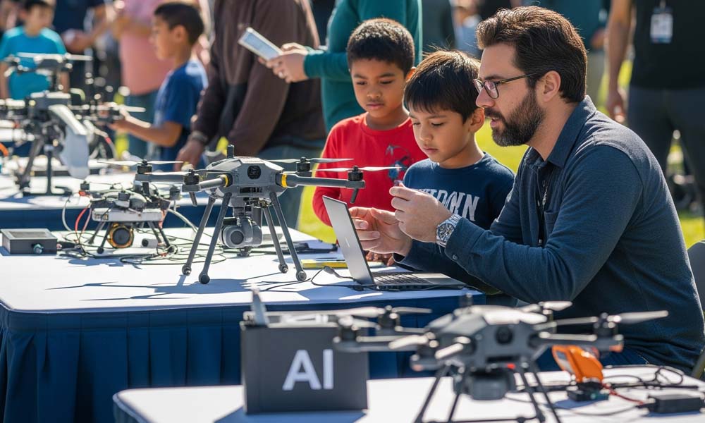 A. Free and subsidized training programs in schools and villages B. Introduction to drone building, robotics, and AI for early learners C. Distribution of low-cost STEM kits to students in underserved areas
